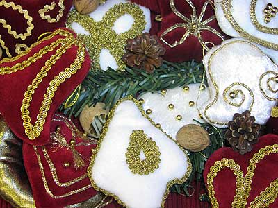 Plüss, lamé vagy szaténselyem anyagokat használj, 20-30 centiből már sok díszt kiszabhatsz.