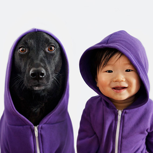 Egy amerikai fotós, Grace Chon egyforma szettekben fotózta le 10 hónapos kisfiát, Jaspert és a család 7 éves, mentett kutyáját, Zoey-t. Imádni valóak külön-külön is, együtt pedig aztán pláne.