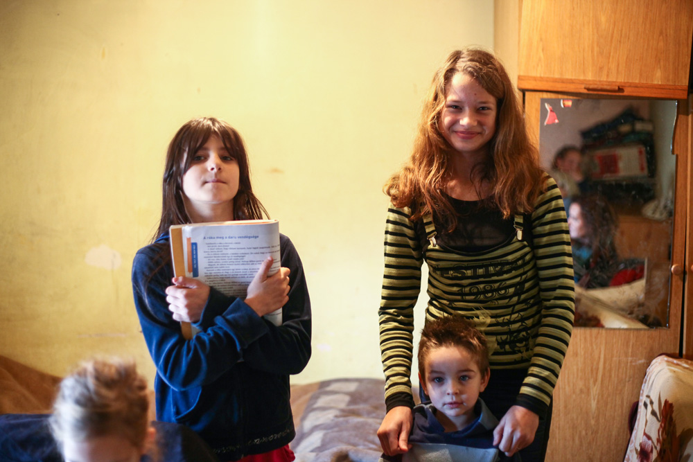 Monorierdő, 2016 decembere, advent első vasárnapja. Közel a főváros, mégis nagyon távoli az ünnepélyes pucc. Itt szürkeség van, lehangoló környezet. Sebaj, biztatom magam, végül is egy nagy családhoz látogatunk, talán más lesz bent, a házban: melegség, jókedv. Az aprócska épület udvara közvetlenül a 4-es út mellett fekszik, a háziasszony jön elém a kapuba, nem vagyok biztos benne, jó helyen járok-e. Nagyon kicsi a ház. Itt élnének nyolcan? A kopár udvarról az ajtón belépve közvetlenül a szobába érkezünk. Kell néhány pillanat, hogy magamhoz térjek, először zavarban is vagyok, mert egyszerre üt szíven a szomorú szegénység látványa, és hat, kicsit félénk, de tágra nyílt szempár érdeklődő tekintete. Szépen sorban ülnek a gyerekek a szoba végében egy matracon, s ahogy közelebb megyek hozzájuk, mosolyognak, mondják a nevüket, nyújtják lelkesen a kezüket.