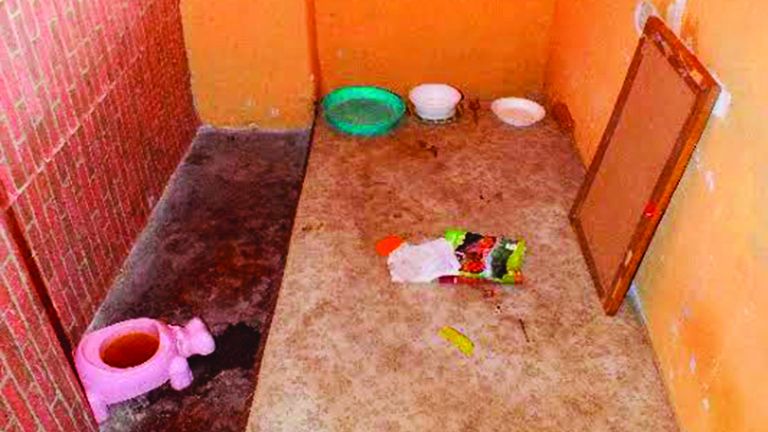 A kislányt 2014 októberben bezárták a spájzba, ahol nem volt fűtés, az ablakkeretben nem volt üveg, és csak kívülről lehetett bejutni a helyiségbe. A spájz ajtaja függönnyel volt eltakarva, küszöbét eltömítették, a gyereknek mindössze egy koszos matracot és egy bilit adtak be. A szülők az alapvető tisztálkodási lehetőséget sem biztosították a lány számára, és enni sem adtak neki, emiatt a gyerek nagyon lesoványodott. Vizet és cukrot csak a szomszédtól, a spájz ablakán keresztül kapott.