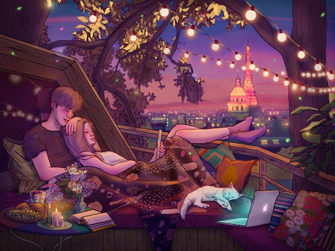 Hyocheon Jeong koreai grafikus ezen a pillanatok alapján készíti illusztrációit, melyek a színek és a szituációk tökéletes összhangja miatt szinte kézzelfoghatóvá teszik a szerelem érzését. Ha egy kis romantikára vágysz, jól fog esni elmerülni bennük!