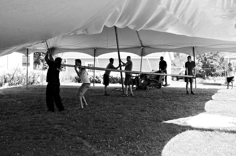A menü részét képezte a magyar gulyás. A falu főutcáján taligába téve toltuk a hozzávalókat, a kondért a helyi erdőben élő juharszirup-termelő bácsitól hoztuk el a majdani kóstoló fejében. Kanadában egyáltalán nem egyszerű gulyást főzni. Bár vittem magyar paprikát és fűszereket, a húsért egy másik tartományban lévő szupermarketbe, ezzel együtt egy másik időzónába kellett elautóznunk Annával. Kettesben, mint nő a nővel, mint anya a lányával. Nagy beszélgetések, titkos bűnözés, nevetés és sírás, kicsit búcsúzás. Majd másnap főztük meg a hatalmas adag levest, amit a falu apraja-nagyja megcsodált.