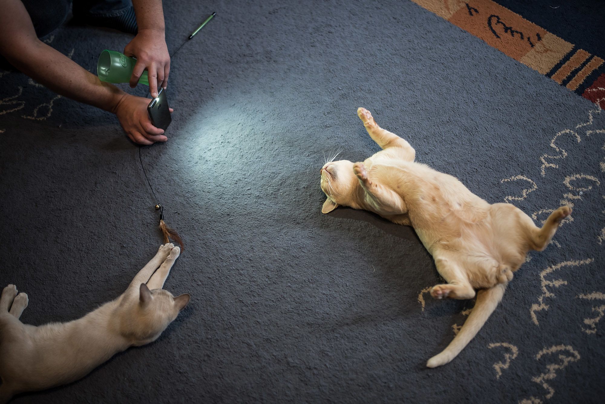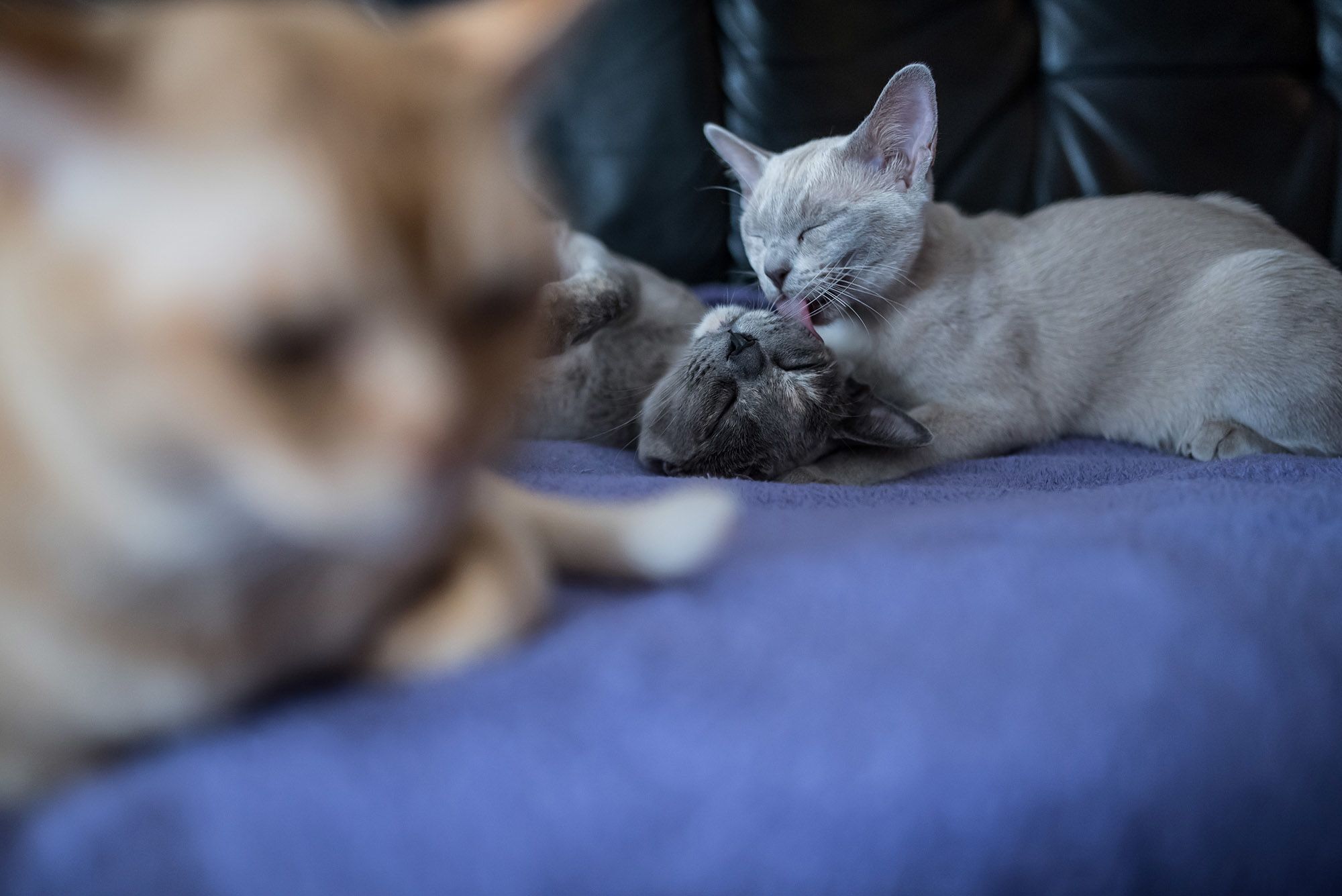 Két másik jószág a kanapén henyél, mikor belépünk, ránk néznek hatalmas mandulaszemükkel, beletolják a tenyerünkbe ufófejüket, és onnantól kezdve tudjuk, hogy elvesztünk, annyi az objektív újságírói attitűdnek.