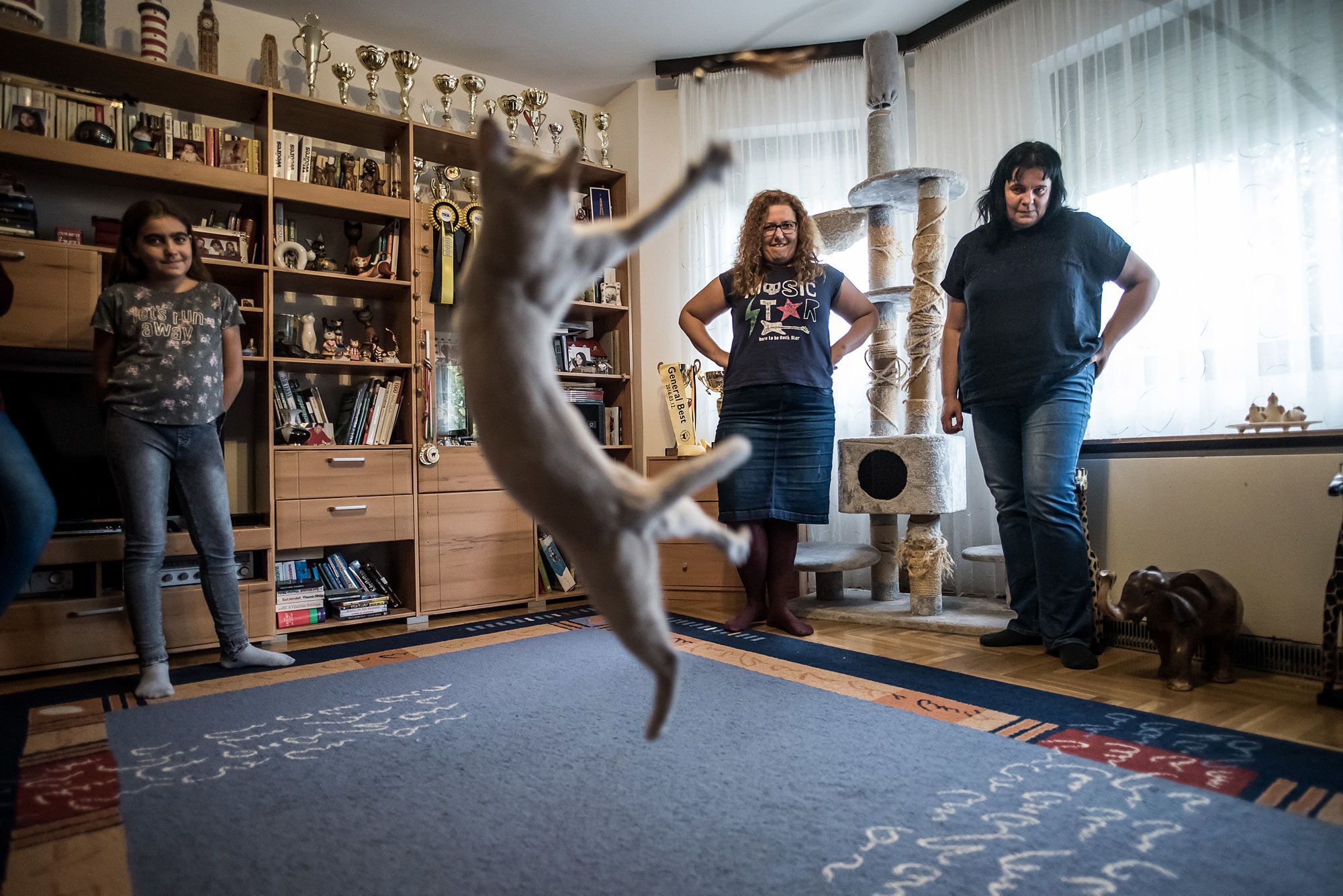 De siker ide vagy oda, tévedésben van, aki azt hiszi, hogy a macskatenyésztésből meg lehet gazdagodni. „Nincs olyan, hogy ne tudnánk eladni a kicsiket, de nem szabad elfelejteni, hogy a tartásuk is rengeteg pénzbe kerül. Az etetésük sem olcsó, de ha hozzászámoljuk az állatorvosi költségeket, az oltásokat, akkor már kisebb vagyonnál tartunk. Meggazdagodni ebből nem lehet, maximum szerényen megélni. De a munka, ami benne van, az teljes embert kíván. És lélek nélkül nem megy, csak határtalan szeretettel, türelemmel. Pont olyan ez, mint a gyereknevelés” –mondja Judit, és miközben beszélgetünk, három lánya határtalan türelemmel szórakoztatja a kölyköket. Amikor azt kérdezzük tőlük, gondoltak-e arra, hogy majd egy nap anyukájuk példáját követve ők is macskatenyésztők, netán állatorvosok legyenek, bizonytalanul pislognak egymásra. Egy dolgot azonban teljes egyetértésben állítanak: macskájuk tuti, hogy lesz. És csakis burma.