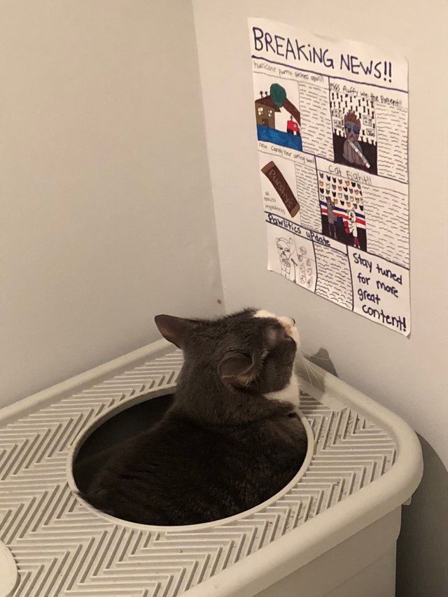 A lányok úgy döntöttek, találnak valami érdekesebb szórakozást a macsek számára, míg az alomban tölti az idejét. Mivel Baba Ganoush eddig is a falat fürkészte, a testvérek készítettek egy külön a cicus számára szóló újságot, amit a falra ragasztottak, hogy legyen mit nézegetnie az állatnak.