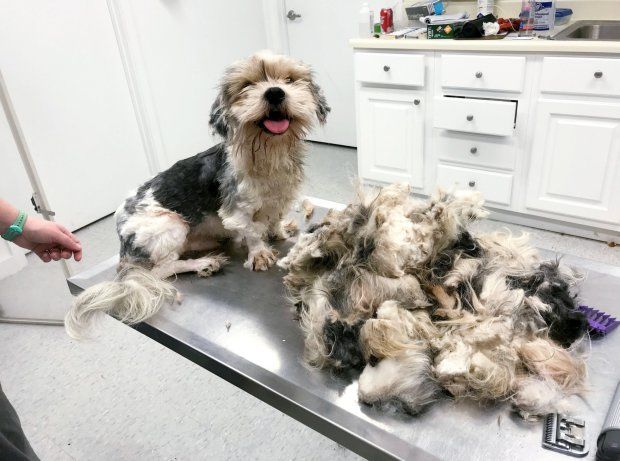 Összesen kétkilónyi összecsomósodott szőrt kellett lehámozni a rémesen elhanyagolt kutyusról.