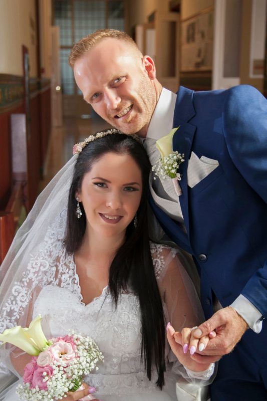 A különleges pár esküvői fotóira nemrég figyeltem fel a közösségi oldalon. Csak úgy sugárzik róluk a boldogság, az őszinte szerelem. És Lilla a kerekesszékében is gyönyörű menyasszony. „Nem mindig voltam kerekesszékes. Időre felálltam, és elkezdtem járni, mint a többi gyermek – meséli az ózdi Tóthné Kovács Lilla (32). – Anyukám kétéves koromban vette észre, hogy a lépcsőzés nem megy úgy, mint a többi gyereknek, és játék közben is többször elestem. A vizsgálatok során kiderült, hogy egy genetikai betegségem van, az SMA III. típusa, ami gerincvelői izomsorvadást jelent. Közben értelmi fejlődésemet is felmérték, ami viszont átlagon felüli volt: 140-es intelligenciaszintet állapítottak meg. Három-négy évesen már írtam-olvastam. Az általános iskola első osztályába még bejártam, bár már akkor is nehézkes volt például kimenni a mosdóba. Emlékszem, napról napra egyre nagyobbnak tűnt a távolság a terem és a mellékhelyiség között. Kilencévesen már csak pár pillanatra bírtam megállni, aztán már csak ülni tudtam. A kerekesszékemet viszont nem szerettem, inkább egy helyben ültem egész nap, de nem használtam. Szóval nem kerekesszékbe kerültem, hanem járásképtelenné váltam. Magántanulóként folytattam az iskolát, csak vizsgázni mentem be tanév végén.”