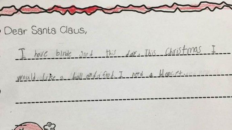 Egy első osztályt vívő tanítónő, Ruth Espiricueta osztotta meg a szívfacsaró levelet, abban az egyik hétéves kislánya csúcsszuper játékok helyett csak az alábbi 3 dolgot kéri a Télapótól karácsonyra: ételt, takarót és egy labdát.