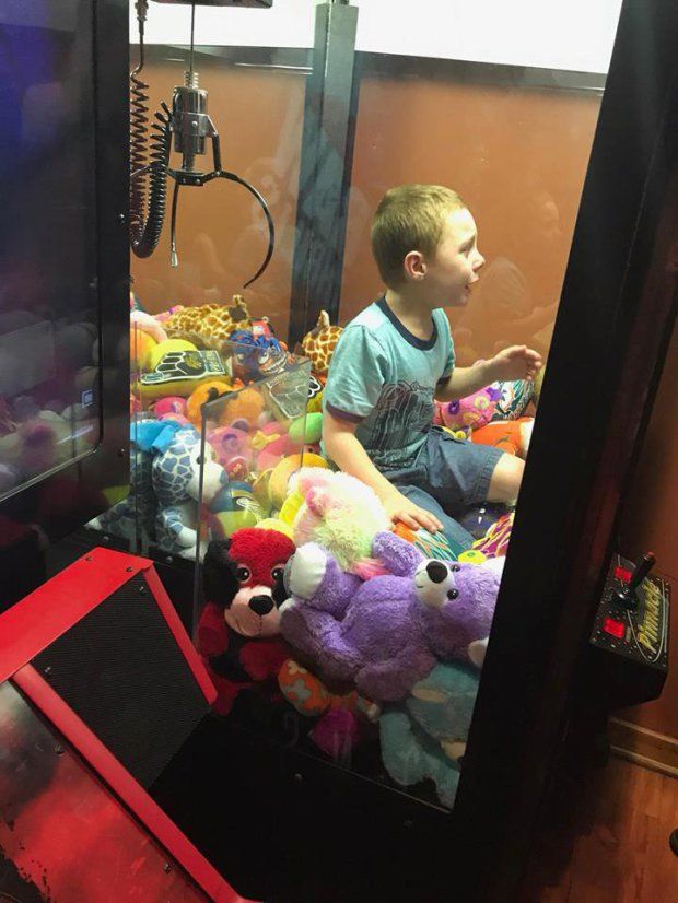 A Mason névre hallgató kissrác egy étteremben pillantotta meg a plüssállatokkal teli játékgépet. Ismerve a ezeknek a turpisságait, a valószínűsége, hogy a karral kifogjunk egy játékot, kábé semmi. Érezve az esélytelenséget, Mason úgy döntött, biztosra megy, és bemászott a gépbe, hogy kedvére választhasson a plüssfigurák közül.