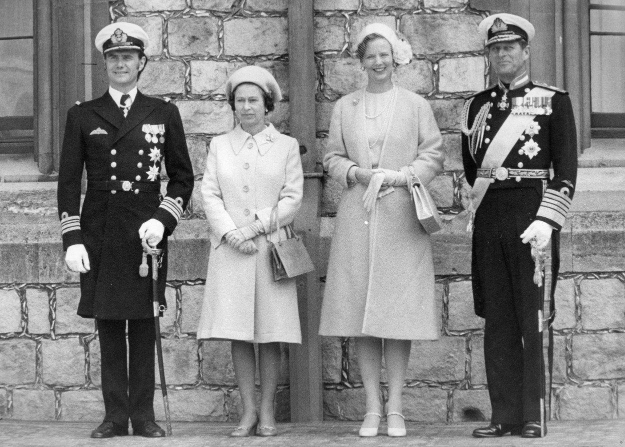 II. Margit dán királynő és Henrik dán herceg II. Erzsébet brit királynő és Fülöp edinburgh-i herceg társaságában. (Fotó: Profimedia, Press Association)