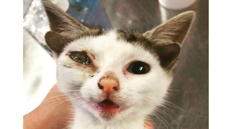 Valószínűleg sokak számára furcsa, talán még kissé ijesztő is a ritka genetikai betegséggel született Frankie külseje. Igazából persze nincs semmi ijesztő ebben a cuki cicában, aki négy fülétől és beteg jobb szemétől eltekintve ugyanolyan játékos és szeretettel teli macska, mint bármelyik társa. Sajnos Frankie jobb szemét nem sikerült megmenteni, ami tovább rontotta örökbefogadási esélyeit, de a Geelong Animal Welfare Society munkatársaira így is nagy hatással volt a parányi állat – hamar elterjedt a dolgozók között a különleges bentlakó híre. Zajos sikere ellenére Frankie-ért nem igazán akartak jelentkezni az örökbefogadó gazdik, ezért a cicust végül a menhely egyik dolgozója, George Anderson vette magához.