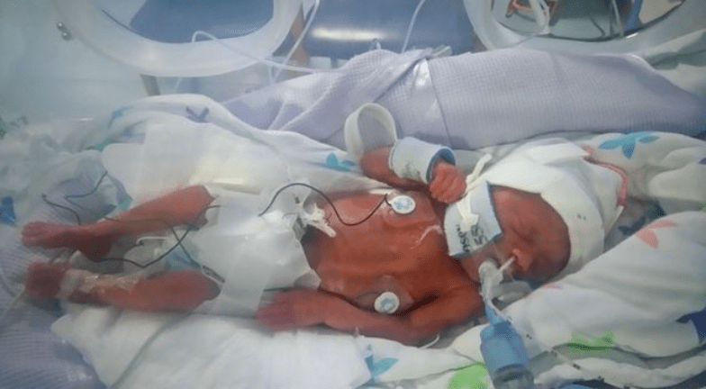 Sarah és párja már a temetését tervezgették, annyira valószínűtlennek tűnt, hogy egy ilyen pici koraszülött életben maradhat. Az orvosok mindössze 10 százalék esélyt jósoltak a csöppségnek a túlélésre, de mindent megtettek érte. Például a nap huszonnégy órájában műanyag zacskókkal tekerték körül, hogy az anyaméhet imitálják számára. Végül 14 héttel később az életben maradásért hősiesen küzdő bébi elhagyhatta a kórházat.