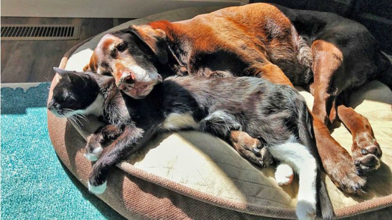Coco, a labrador és Mittens, a macska 13 évvel ezelőtt, néhány hónap különbséggel, kölyökként kerültek ugyanahhoz a családhoz, ám hiába teltek-múltak a hónapok, majd az évek, nem barátkoztak össze.
