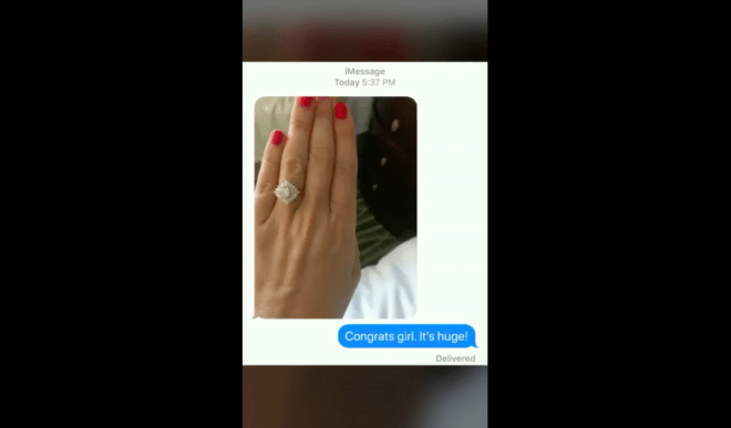 A nő egy képet akart készíteni a kezéről, rajta a frissen megkaparintott eljegyzési gyűrűvel, ám nem vette észre, hogy fotó helyett a Live funkció volt bekapcsolva a mobilján – azaz egy 3 másodperces minivideót készített. A mozgóképet épp akkor sikerült ellőnie, mikor vőlegénye pucéran masírozott át a háttérben, így a gyűrű mellé egy himbálozó péniszt is kapott a rokonság.