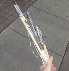Végül elszaladtak a legközelebbi Home Depot áruházba, ahol összevásároltak mindent, amiről úgy gondolták, hasznukra lehet. Ezt az eszközt készítették, amellyel megpróbálták kihalászni a gyűrűt – sikertelenül.