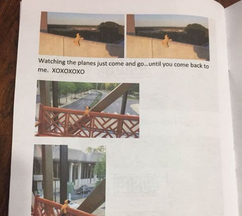 „Imádja a plüssállatokat, most Sütitészta a kedvence, sokkal jobban ragaszkodik hozzá, mint a korábbi játékaihoz” – árulta el August anyja, Kelly. A kislány csak hazafelé, a kocsiban vette észre, hogy kedvenc plüssállata a reptéren maradt. „Azt hittem, sírni fog” – mondta Kelly, aki egyből hívta a repteret, ahol gyorsan megtalálták Sütitésztát, és megígérték, hogy megőrzik, amíg érte tudnak menni. Amikor pár nappal később elment kislányával a plüssért, meglepődve tapasztalták, hogy milyen csodálatos kalandokban volt része a plüssállatnak.