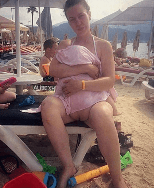 Az anyuka – akinek a kiléte ismeretlen – valószínűleg arra kérte a párját, örökítse meg kedves, babájával közös pillanatát a strandon. Ám mivel a baba feneke pont az anyuka lába közé került, a látvány elég zavarba ejtőre sikerült.