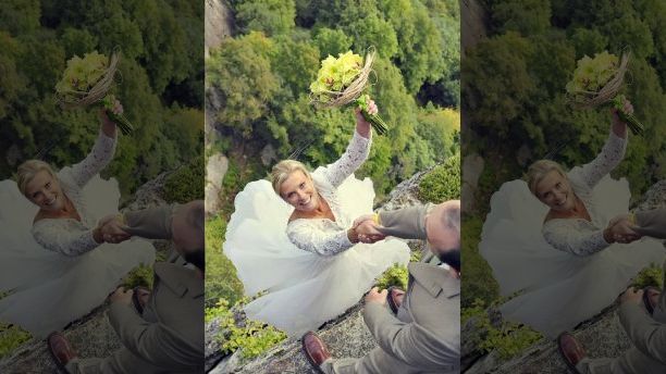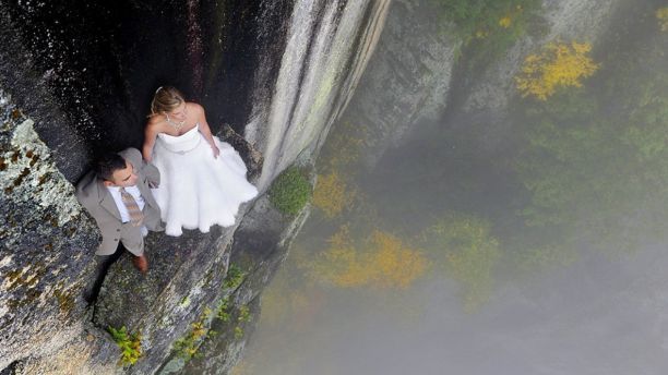 Ők azok, akik Jay és Vicki Philbricket választják esküvői fotósaiknak. A Philbrick házaspár 15 éve foglalkozik fotózással, 2008 óta pedig egy egészen különleges szolgáltatást is kínálnak: a párok esküvői fotóit több száz méter magasban, sziklaormok szélén készítik el.