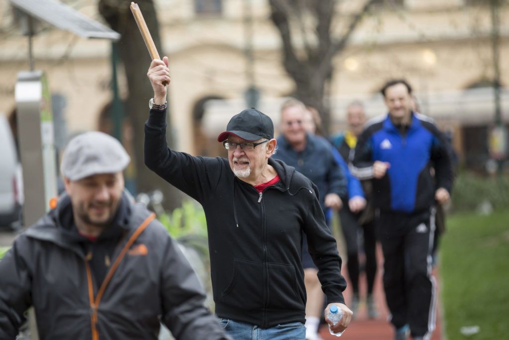 Még sportolni is szoktak. Jánosi Zoltán irodalomtörténész (középen) fut a Költők futása című rendezvényen (Fotó: MTI/Mohai Balázs)