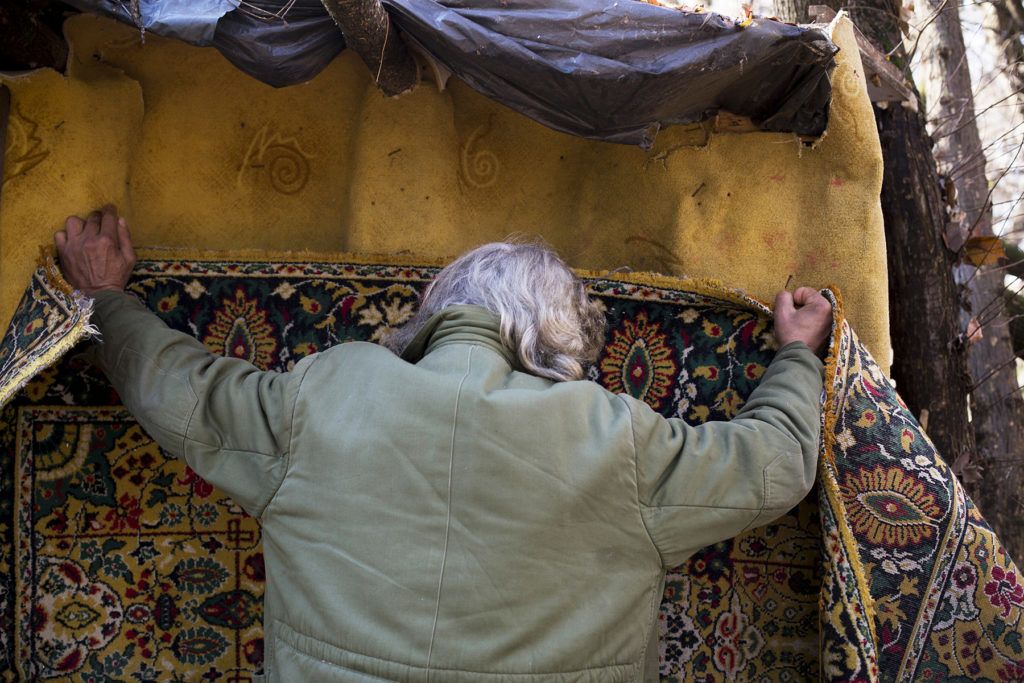 Erdei szállását építi egy hajléktalan (Fotó: Pál Anna)