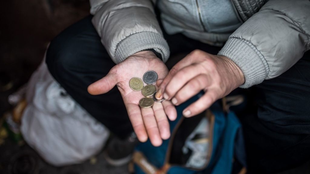 Az aprót számolja egy hajléktalan egy budapesti aluljáróban (Fotó: Neményi Márton)