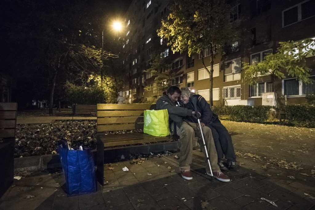 Hajléktalan pár éjszaka, egy budapesti parkban (MTI Fotó: Mónus Márton)