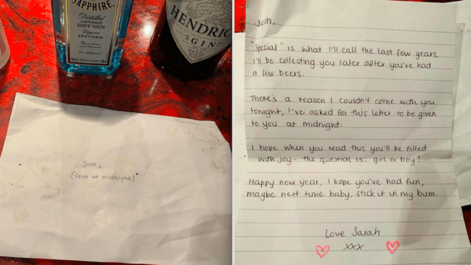 Az egész internet odavan egy Sarah nevű lányért, aki levélben üzente meg barátjának, Josh-nak, hogy gyereket vár. Sarah nem tartott Josh-sal a szilveszteri buliba, ehelyett megkért valakit, hogy éjfélkor adja át neki a levelét, amiben egy vicces kis versben tudatja a leendő apukát állapotáról.