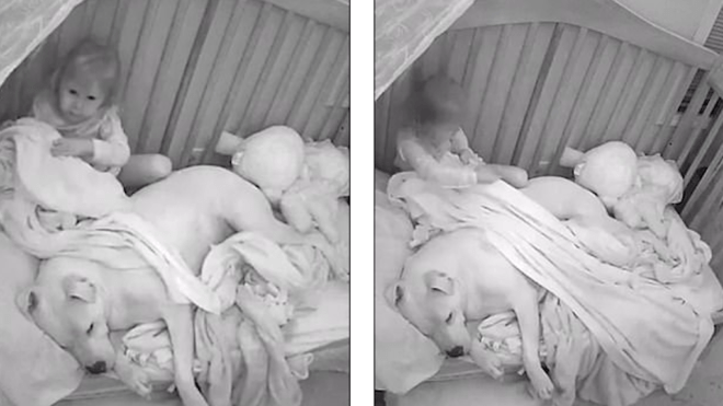 A csaknem 40 kilós pitbull minden este a kislány ágyában éjszakázik, Adalynn ugyanis csak mellette tud elaludni. Előfordul azonban, hogy Fury előbb szenderül álomba, mint a kislány – ilyenkor Adalynn gondosan betakargatja, ahogy ezen a babakamera által rögzített felvételen is látható. Imádni való!