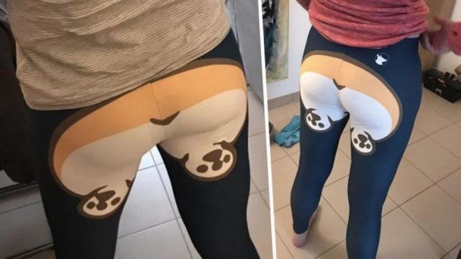 A gazdiról annyit tudunk, hogy egy Princess névre hallgató corgi kutyus boldog tulajdonosa, és valamiért a fejébe vette, hogy olyan hátsót akar magának, mint kutyusáé. Ezért egyedi leggingset tervezett, aminek a feneke a kutyájáéra hasonlít.
