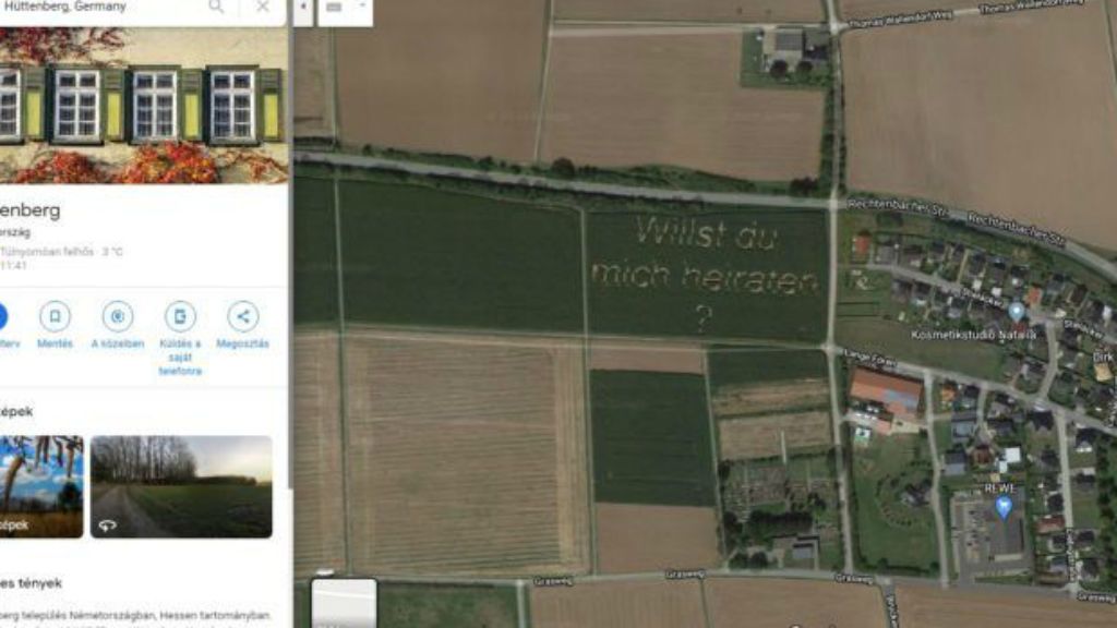 A 32 éves Steffen Schwartz egészen rendhagyó módját választotta annak, hogy feleségül kérje szíve választottját. A német földműves tavaly májusban egy vetőgép segítségével úgy alakított ki egy kukoricatáblát, hogy az üresen maradt földrészek betűket formáljanak, és így kiolvasható legyen németül a „Hozzám jössz feleségül?” kérdés. A történet azonban itt nem ér véget – írta meg a történetet a 24.hu.