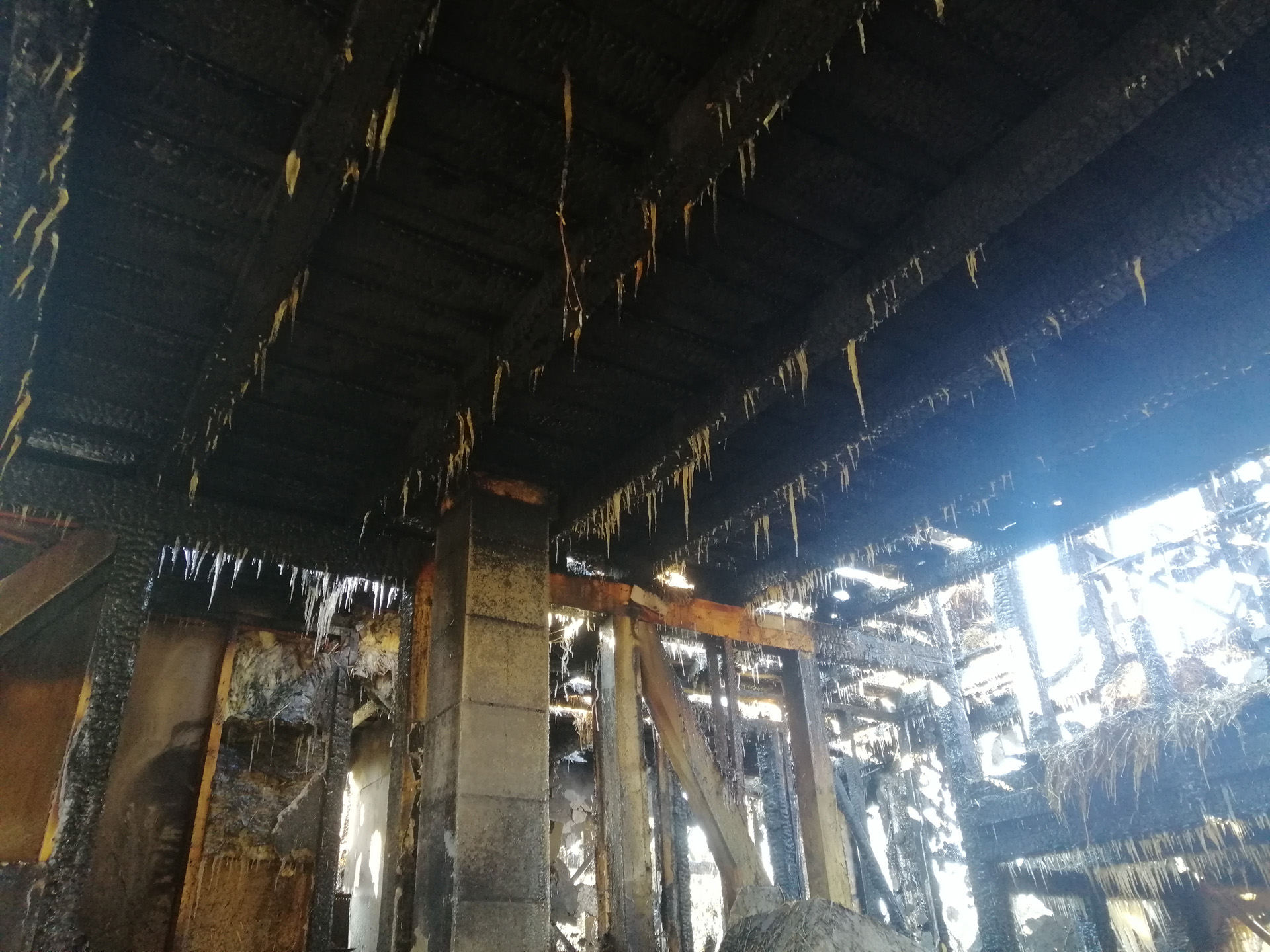 A szalmafalú épület fából készült teraszán keletkezett a tűz, egészen éjszakáig oltották, többször vissza is jöttek a tűzoltók.