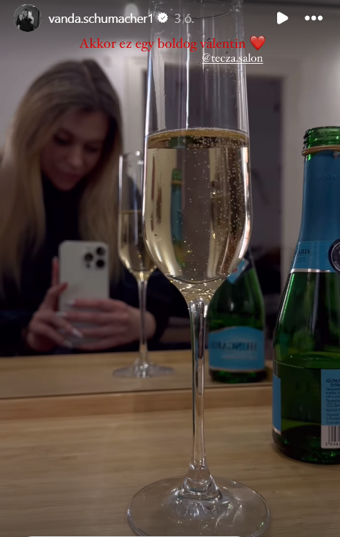 Schumacher Vanda, aki mindig rejtélyesen fogalmaz a magánéletét illetően, nem tudni, hogy kapcsolatban van-e vagy sem. Az biztos, hogy ő ma még nem posztolt szerelmes üzenetet a közösségi oldalaira. Sőt, 24 óráig elérhető Instagram-történetében megmutatta, már délelőtt pezsgőt bontott.