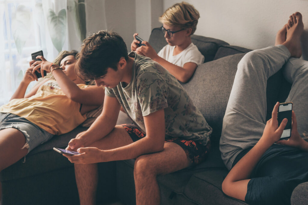 A gyerek fejlettségéhez mérten beszélgessünk arról is, hogy a valós interakciók, találkozások mennyivel egészségesebbek, mint az, amivel a közösségi médiában találkozunk, és mennyire nehéz ellenállni az internet kísértéseinek. Magyarázzuk el azt is, hogy a nagy tech cégek és a hirdetők folyamatosan célba vesznek minket, és függővé akarnak tenni minket a telefonjainktól. Idősebb gyerekekkel például meg lehet nézni a Netflix saját gyártású dokumentumfilmjét Társadalmi dilemma (The Social Dilemma) címmel, amely kiválóan rávilágít a közösségi média veszélyeire.