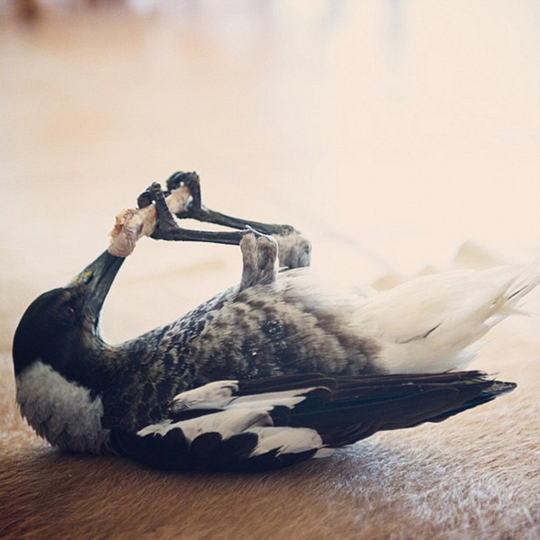 Az ausztrál Bloom család 2013-ban talált egy sérült szarkát, befogadták, meggyógyították és Pingvinnek nevezték el.