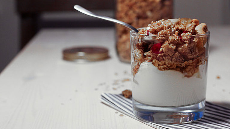 Bár már a 19. században is létezett, még a gabonapehelynél is kevésbé elterjed szuperreggeli idehaza a granola vagy más néven ropogós müzli. Főként zabból, olajos magvakból és aszalt gyümölcsökből áll, de tulajdonképpen bármit adhatunk hozzá, a lényeg: a benne lévő gabona ropogósra legyen sütve! Annak ellenére, hogy otthon is elkészíthető, egyre többféle kiszerelésben és ízesítésben lehet kapni a boltokban, mert valljuk be: nem mindig szeretünk órákat a konyhában piszmogni, főleg, ha a reggeliről van szó. Ezért a teljesen natúrtól az aszalt gyümölcsösön át már a csokis gabonapehellyel kevert, kalciummal is dúsítottig bármit megkívánhatunk. Reggelin kívül pedig tökéletes a cupcake receptekhez is!