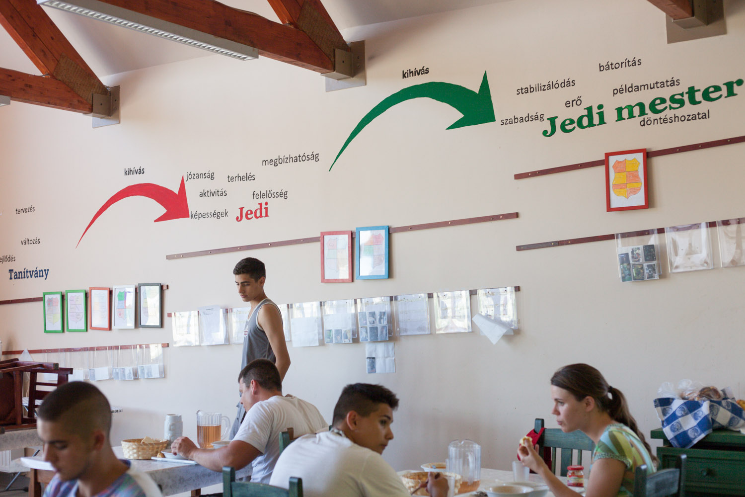 A haladást a felépülésben a Csillagok háborúja filmek világát megidéző különleges visszajelzési rendszerrel teszik láthatóvá. A közösségben való aktív részvételen és az eredményesen végzett feladatokon keresztül a kamaszok úgynevezett jedikártyákat gyűjthetnek, három kártya birtokában pedig szintet léphetnek: tanítványból jedi, jediből jedimester válhat. Ehhez a mesebeli hősökhöz hasonlóan teljesíteniük kell egy kihívást, azaz olyan feladatot, amiben meg tudják haladni magukat egy számukra nehéz területen. Volt, aki soha életében semmilyen házimunkát nem csinált, itt meg paprikás krumplit dobott össze a közösségnek. Egy izgulós fiú verset mondott, a társai felé nehezen nyitó Balázs pedig mindenkivel beszélt fél-fél órát. Ő jelenleg a második fázisban jár, azaz jedi, ennek megfelelően már elmehet kimenőre, hogy a kinti életben is gyakorolja a bent szerzett kompetenciákat. Nagyobb a felelőssége is: példát mutat és patronálja a tanítványokat, emellett fokozott önreflexiót és kezdeményezőkészséget várnak el tőle.
