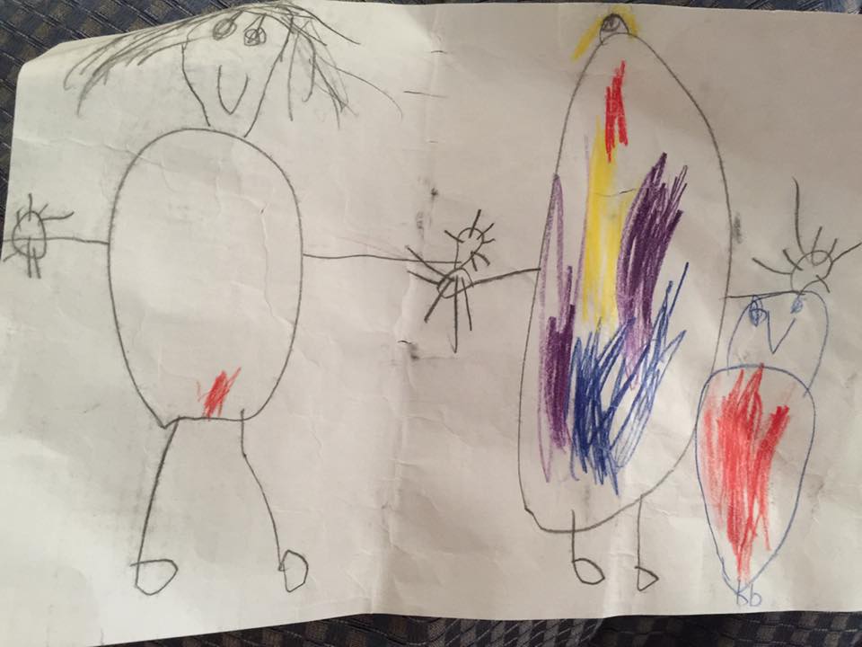 A rajzot Penny Rohleder, Julian édesanyja osztotta meg a neten az alábbi kommentárral: „Julian készített egy családi portrét, (Mayannát és Arlynt kifelejtette), és mikor megkérdeztem, mi az a vörös izé rajtam, azt felelte a menstruációm!”