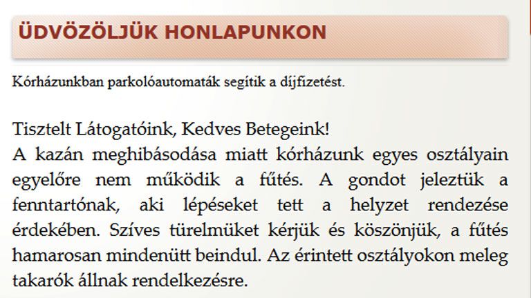 A kórház közlése szerint a kazán romlott el, de a fenntartó már intézkedik. Mint írják, addig viszont plusztakarókat biztosítanak a betegeknek: