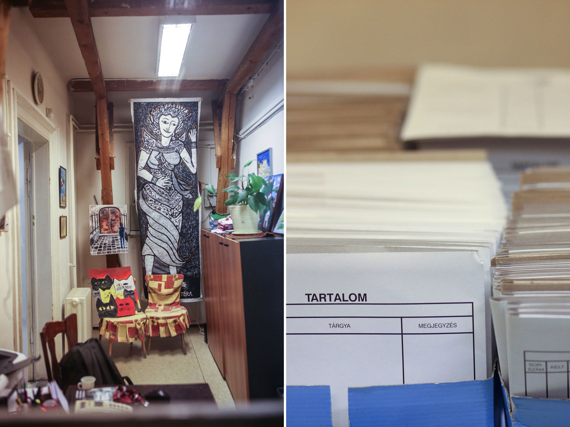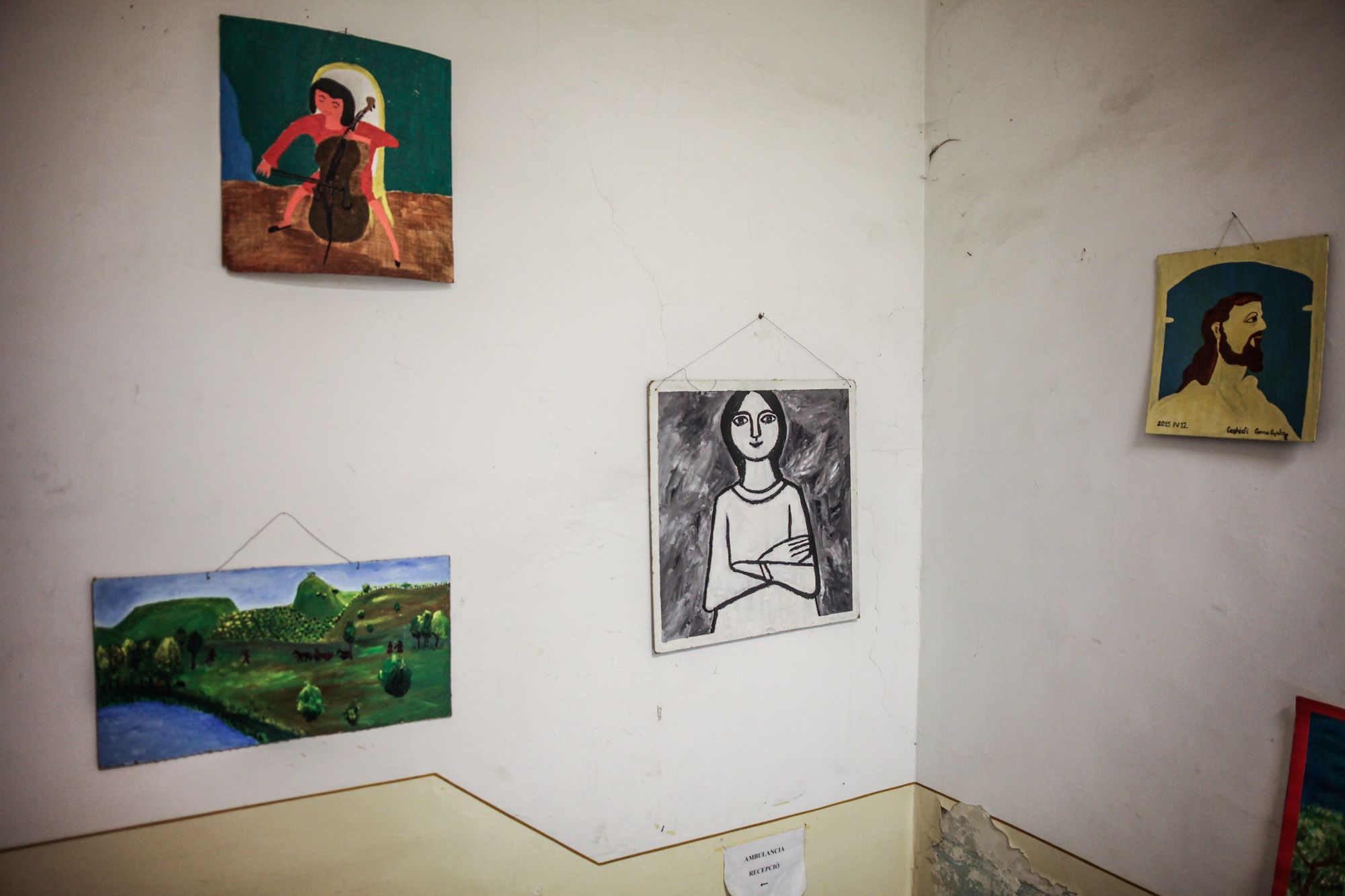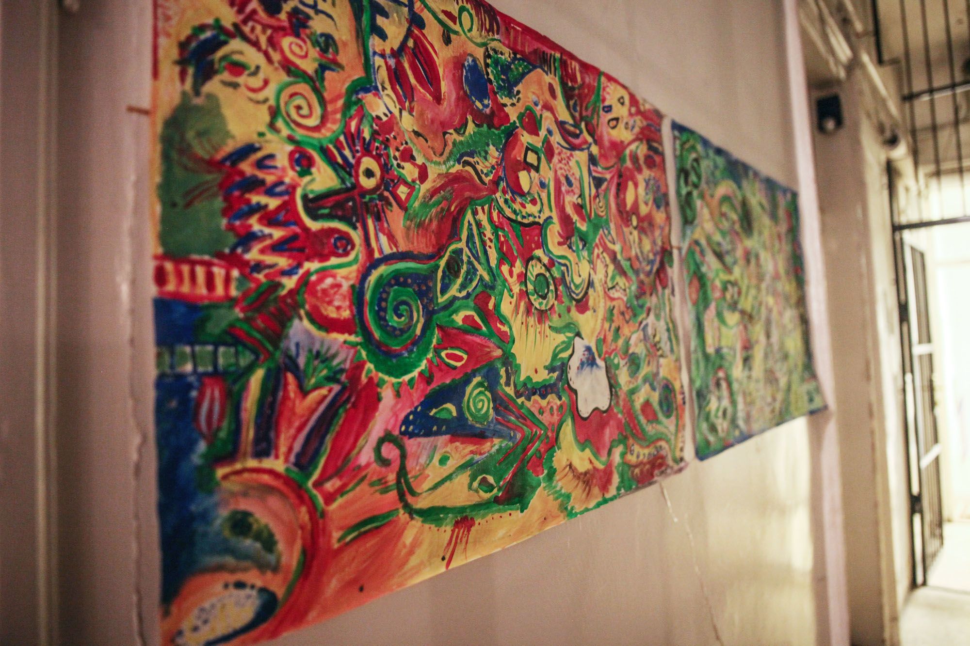 Ha valaki mit sem sejtve betévedne a nyolcadik kerületi épület kapuján, annak valószínűleg álmában sem jutna eszébe, hogy itt mentális problémákkal élő embereket kezelnek, előbb gondolná azt, hogy egy hangulatos romkocsmában jár. Nemcsak a padokkal körbevett belső udvaron függ festmények és rajzok sokasága, a színes képek végigkísérik a lépteinket a folyosókon, és végül abban a szobában is jó néhány akad belőlük, ahol összegyűlünk beszélgetni.