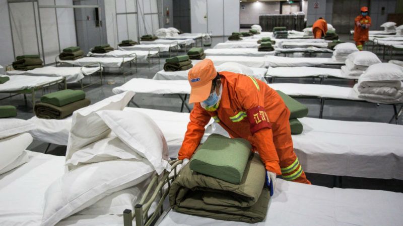 Takírítés Vuhan egyik átmeneti kórházában (Fotó: Getty Images /Stringer)