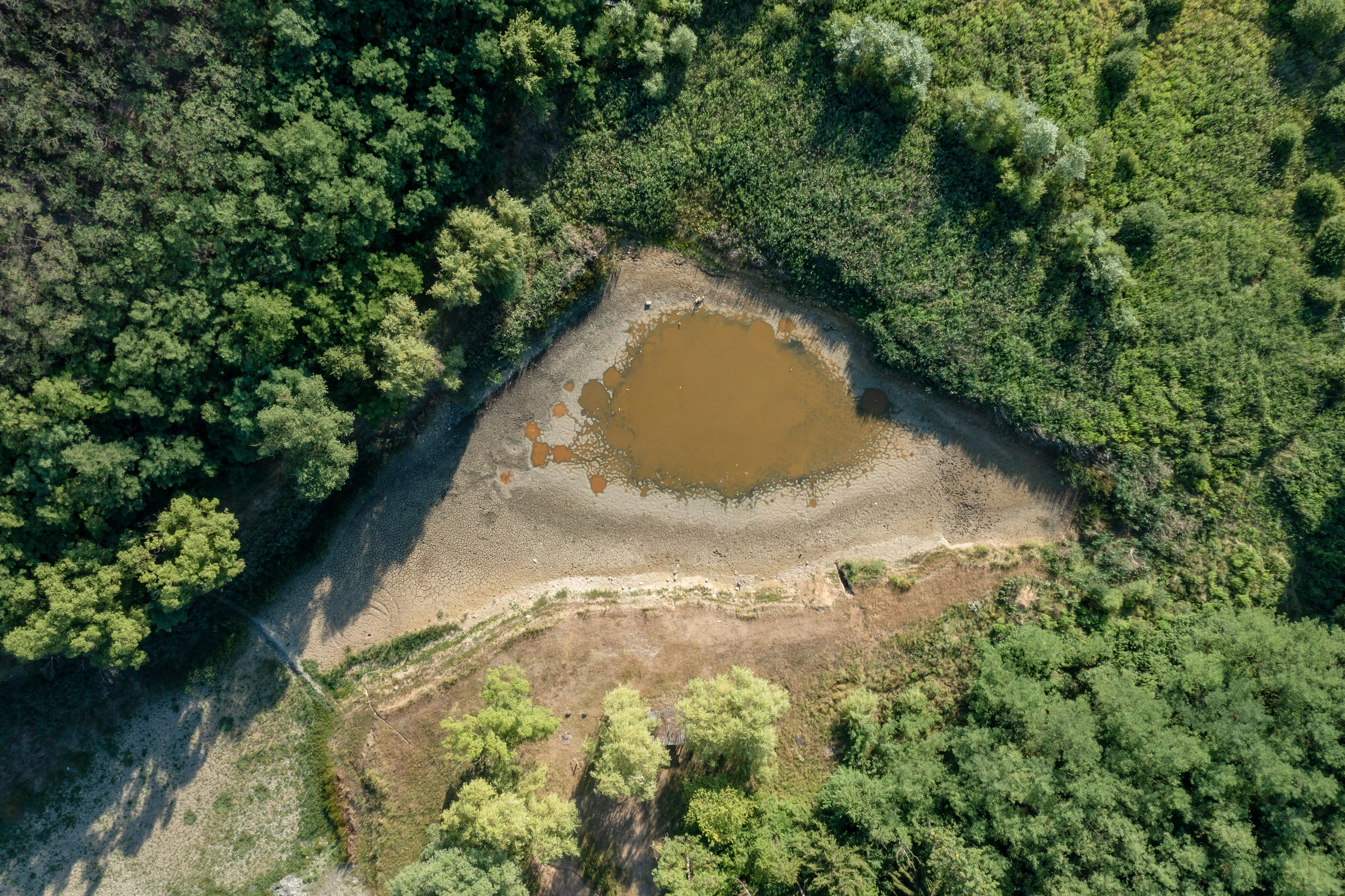 A kiszáradóban lévő Halda-tó Bátonyterenyén 2022. nyarán (Fotó: MTI/Komka Péter)