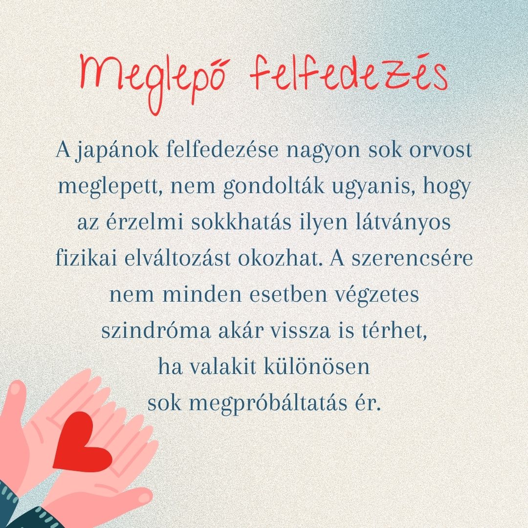 A megtört szív szindróma tehát egy létező egészségügyi probléma, és a tudományos elnevezése stressz-kardiomiopátia. A különös jelenséget először egy japán orvos írta le, nem is annyira régen, 1990-ben.