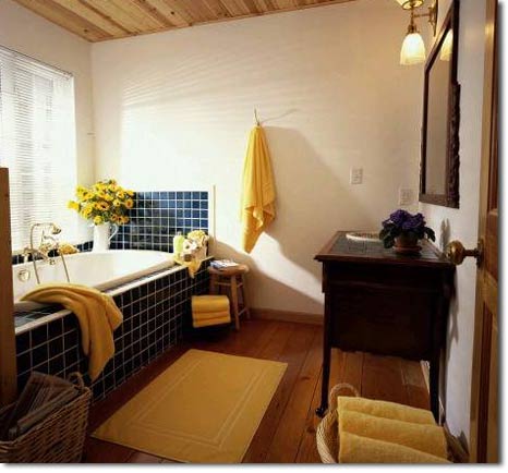 Szerkezetük, hangulatuk lehetővé teszi, hogy nagyobb felületet burkoljunk velük, akár az egész fürdőszobát is. Szintén nem szokatlan látvány mondjuk egy londoni fürdőszobában a fotel, nagy színes párnákkal, vagy fekete kovácsoltvas kétszemélyes szék. Egyes elgondolások még a kandalló beépítését is szorgalmazzák. Vannak belsőépítészek ugyanis, akik úgy vélik, hogy a fürdőszoba nem csak egy funkció betöltésére, a tisztálkodásra alkalmas, hanem a családi élet színtere is lehet, és ezt teszi lehetővé az ülőgarnitúra, a hangulatos fűtés. Az ilyen vonalat követő építészek, lakberendezők öltözőszobával, vagy öltözőfülkével is kombinálják a fürdőszobát. Az öltözőfülke, vagy -szoba nem számít luxusnak, hiszen csak ügyes tértervezés kérdése. Azt se felejtsük el, hogy öltözőfülke alkalmazásával kiküszöbölhető nagy kombinált szekrények alkalmazása, melyekkel a nappali könnyen raktáráruházra hasonlíthat.