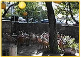 A lampionokkal és fonott bútorokkal kiállított köztes műfajú kiülős szórakozóhelynek egyedi szcenáriót biztosít a török fürdő és egyéb épületek romjai, melyeket ügyesen kerülgetnek a melange-zsal szaladgáló cincérek. Úgyhogy szeszes itallal – pláne este – csak óvatosan vagy gyakorlattal. Az elegáns hely estefelé bebábozódik és zenés mulatóvá alakul, melyhez a hold asszisztál. Így olyan a hely, mint egy kettő az egyben sampon: kávézó és diszkó. A tánc pedig különösen jólesik ötszáz éves romokon.