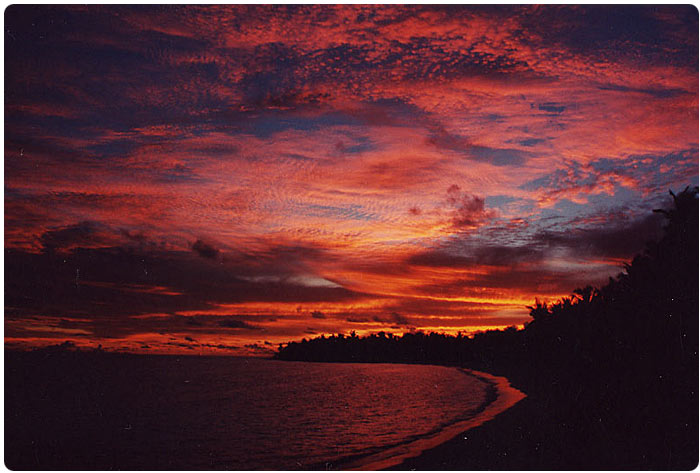 A nap, az Egyenlítő közelsége miatt menetrendszerinti pontossággal hatkor kel és hatkor nyugszik. A napkeltét sajnos minden reggel elmulasztottuk, de a naplemente tökéletesen kielégítette romantikára szomjazó lelkem igényeit.