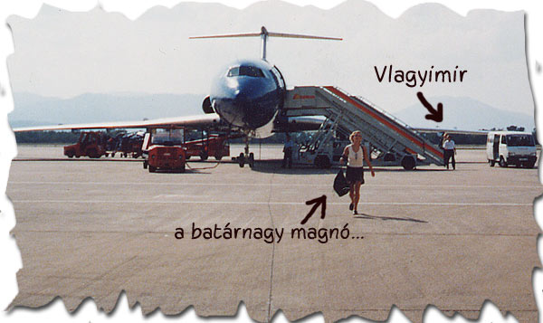 Vlagyimirba, mint egyetlen, a repülő közelében tartózkodó emberbe botlottam, és minden általam ismert nyelven kérleltem, hogy engedjen már vissza a gépre. Vlagyimir az orosz pilóta, igen kedves, kérdő tekintettel mosolygott rám, és szórakozottan hallgatta negyedórás előadásomat, majd válaszra sem méltatott. Ha nem kószál arra egy stewardess, talán még ma is a spanyol reptéren fohászkodom egy ártatlan zenedobozért…