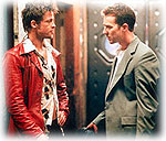 A D. Fincher rendezte Harcosok klubja súlyos kritikát gyakorol az anyagi javakat felhalmozó fogyasztói társadalomra. A filmnek két főszereplője van. Az Edward Norton által alakított figura vágyai megtestesítőjeként „születik meg” Brad Pitt, azaz a laza stílusú, renitens Tyler, aki mozigépészként és alkalmi pincérként, majd a harcosok klubjának vezetőjeként követi el egyre durvább akcióit. Eközben Norton barátjaként és harcostársaként, s mint időközben kiderül, másik énjeként küzd a filmvásznon – látszólag a külvilággal, valójában saját korlátaival.