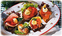 Szaggassunk ki a kenyérszeletekből különböző formákat. A szeleteket vékonyan vajazzuk meg, tegyünk rá egy salátalevelet, felvágott- és halszeletet. Tetejére tegyünk egy kis majonézt, tormakrémet, és díszítsük ki.