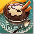 A pudingport a tasakon jelzett módon elkészítjük, majd hozzáadjuk a kávéfőzetet, a nescafét, és összedolgozzuk. A poharakat vagy kisebb üvegtálakat hideg vízzel kiöblítjük, egyenletesen elosztjuk benne a pudingot, és kihűlés után jégszekrényben dermesztjük. Közben elkészítjük a csokoládé öntetet. 1,5 dl tejet és 1 dl tejszínt felforralunk, hozzáadjuk a kakaóport és a lisztet, és állandó keverés mellett besűrítjük. Ha nagyon sűrűre sikerült, hűtsük le (szobahőmérsékletre) és tejszínnel hígítsuk fel. A megmaradt tejszínt kemény habbá verjük, a poharakban lévő megdermedt pudingra halmozzuk és meglocsoljuk a csokoládéöntettel. Díszíthetjük reszelt csokoládéval, ostyaszelettel vagy holipnivel.