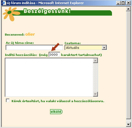 A hozzászólásoknál a pop up ablakok kinagyíthatóak. Hozzászólásod biztonságáról számláló gondoskodik, így nem szállhatnak el üzeneteid, ha túllépnéd a keretet.